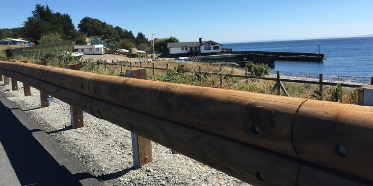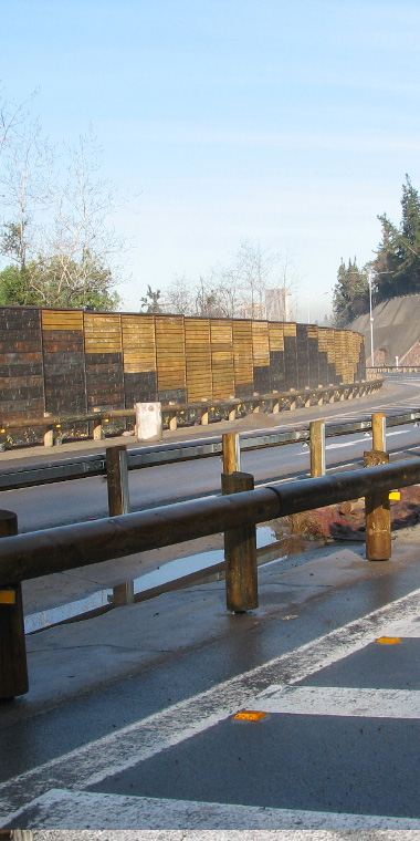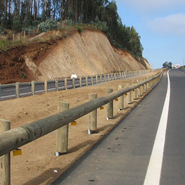 La madera utilizada en estas defensas camineras (Pinus Radiata D. Don) destaca positivamente, ya que proviene de bosques plantados por el hombre.