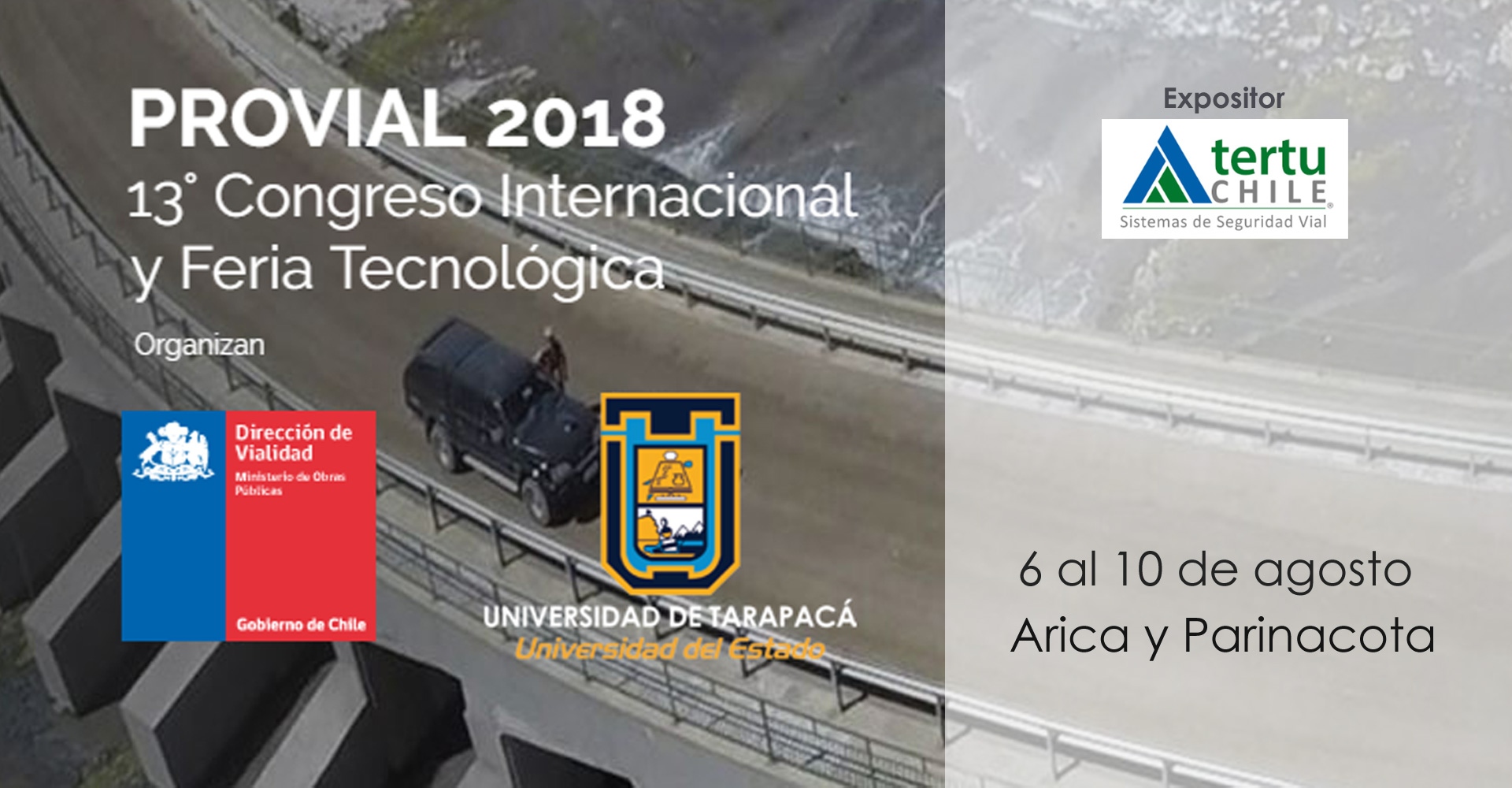 Tertu Chile expondrá en el Congreso internacional de difusión de mantenimiento vial que reúne a Expertos, Académicos, Profesionales, Proveedores, Firmas Consultoras y Autoridades de Chile y el extranjero, con el fin de intercambiar experiencias relativas al estado del arte en investigación, aplicaciones y gestión en el área de mantenimiento y explotación de caminos y carreteras.
